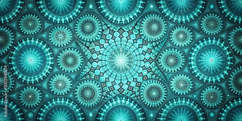 A mesmerizing fractal pattern with concentric circles and intricate geometric designs in shades of teal and turquoise.
