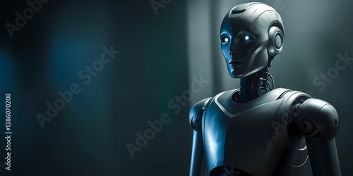 A metallic robot head in a dark environment, symbolizing artificial intelligence and technology, suitable for futuristic and AI themes.