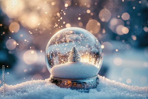 A Miniature Snow Globe with a Tree Inside, Resting on a Snowy Surface