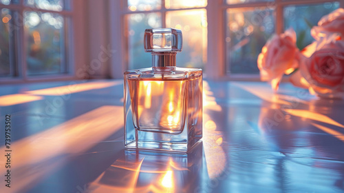 A minimal elegant perfume bottle. Parfumerie banner.