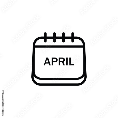 A minimalist black and white line drawing of an open calendar page displaying the word APRIL.