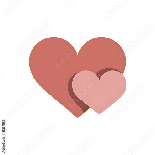 A minimalist design featuring two layered pink hearts on a black background