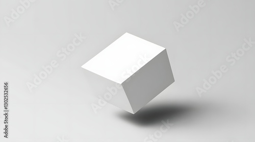 A minimalist floating white cube casting a soft shadow on a light gray background, symbolizing simplicity