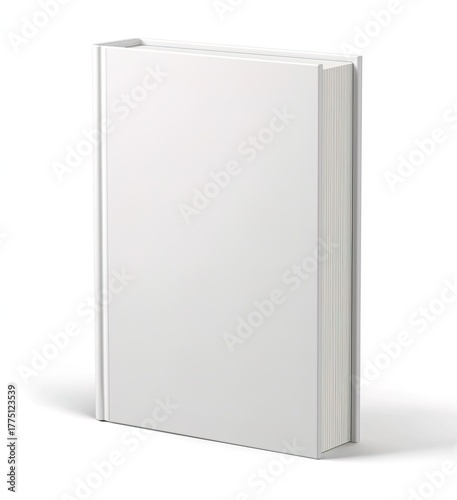 A minimalist, high-quality mockup of a standing hardcover book with a blank white cover and visible spine. The clean, simple background accentuates the book’s modern design, making it suitable for sho