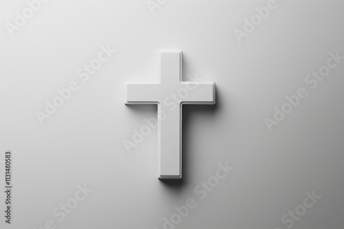 A minimalist representation of a white cross on a soft background.