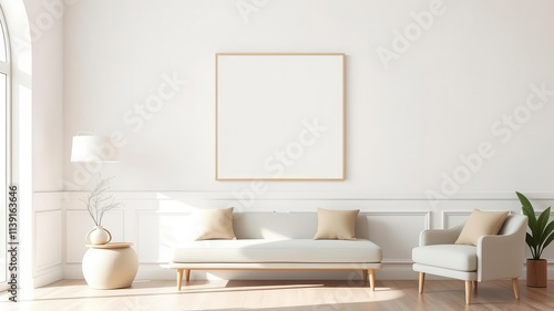A mockup of a modern wall art design featuring a clean, empty canvas, canvas, wall art