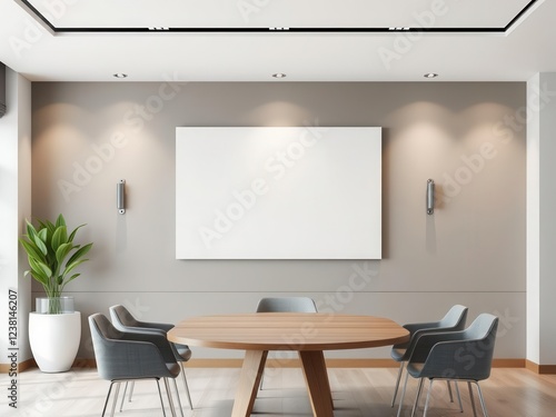 A mockup of office wall art canvas displayed during a meeting, productivity, office, mockup
