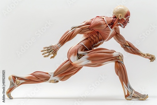 A model of a man running energetically, captured on a plain white background