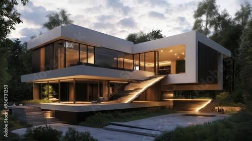 A modern 2-storey residence with a unique architectural design, including cantilevered sections,
