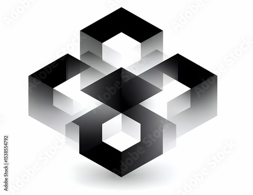 A modern abstract graphic design featuring black geometric shapes and a gradient effect, perfect for various projects.