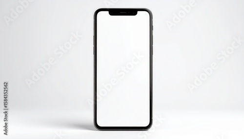 A modern black smartphone with a blank white screen, presented on a plain white background.