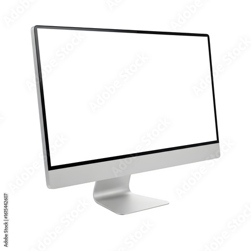 A modern computer monitor with a blank white screen isolated on white or transparent background. PNG