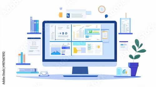 A modern e-learning platform displayed on a computer, showcasing interactive courses, quizzes, and progress tracking tools in a sleek, user-friendly interface