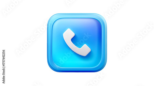 A modern glossy blue app icon with a white telephone receiver symbolizing calls and communication isolated on a white background,