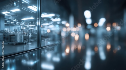 A modern industrial facility showcasing advanced machinery and technology through large glass windows.