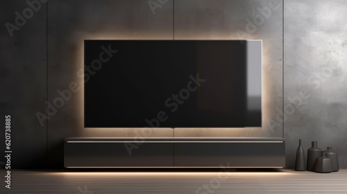 A modern living room with a large wall-mounted television