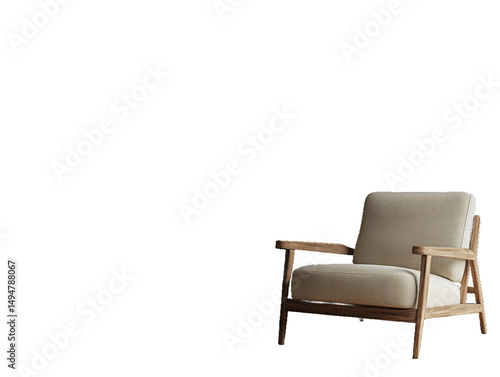 A modern, minimalist armchair with a wooden frame and soft upholstery.