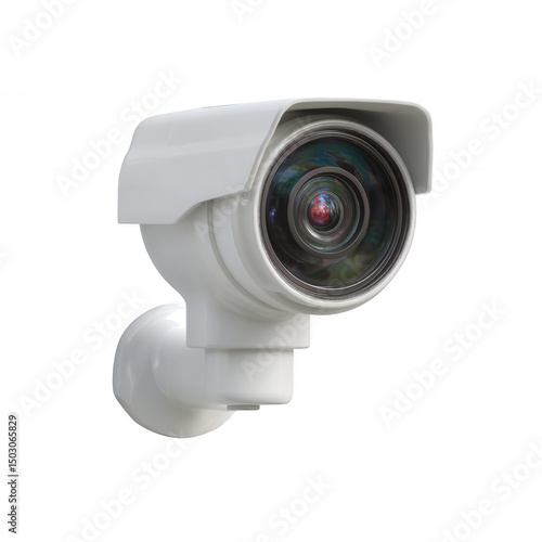 A modern security camera with a sleek white design, ideal for monitoring and surveillance. Captured on a white isolated background for easy integration into various projects.