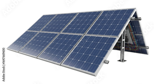 A modern solar panel system showcasing a sleek design and blue photovoltaic cells.