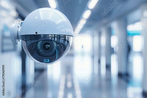 A modern surveillance camera in a sleek corridor, reflecting a focus on high-tech security.