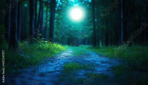 A moonlit path in a forest, leading to nowhere, aimlessness, lost in life s journey