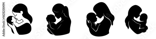 A mother and child are depicted in a modern silhouette illustration set against a white background