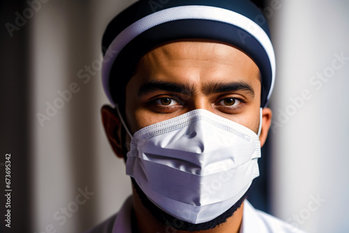 A muslim man wearing protective mask. COVID 19. Mask-Wearing with Confidence. Generative AI