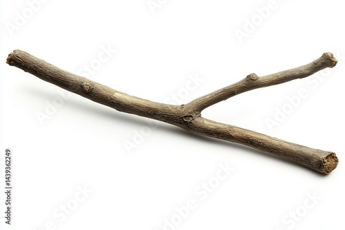 A natural, weathered branch with a Y-shape, isolated on a white background for artistic use