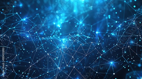 A network of thin luminescent blue lines connecting small bright dots on a deep dark blue background forming a starry night-like plexus structure with a clear unobstructed area for text