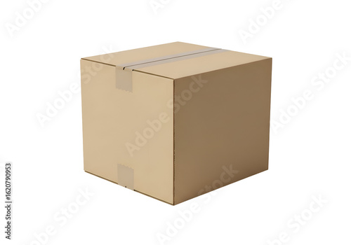 A neutral-toned cardboard box with tape.
