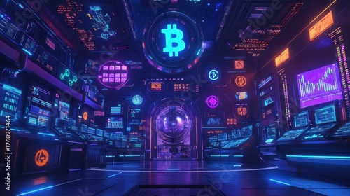 A next-gen space station economy powered by decentralized finance complete with floating trade hubs transparent market data screens and AI-regulated transactions