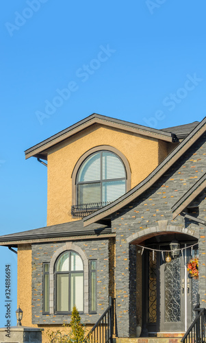 A nice entrance of a luxury house over outdoor landscape