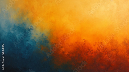 A painting of a yellow and blue background with a red line