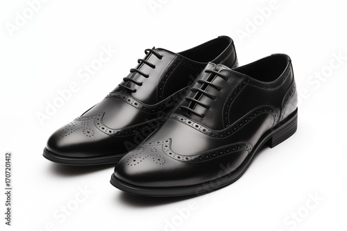 A pair of black leather shoes isolated on a white background.
