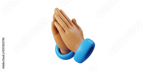 A pair of cartoon hands clasped together in a praying gesture against a black background with blue bands