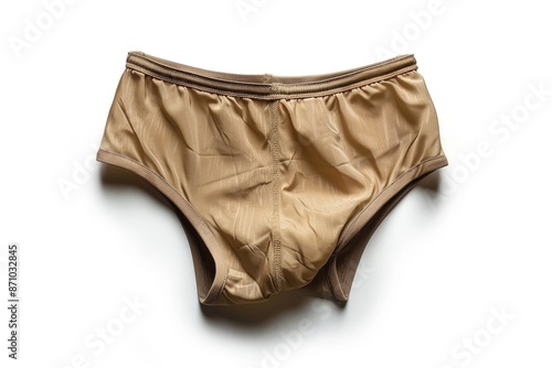 A pair of underwear sits on a white surface, ideal for use in still life photography or as a prop in creative compositions