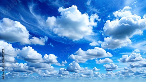 A panoramic view of the serene blue sky filled with fluffy white clouds