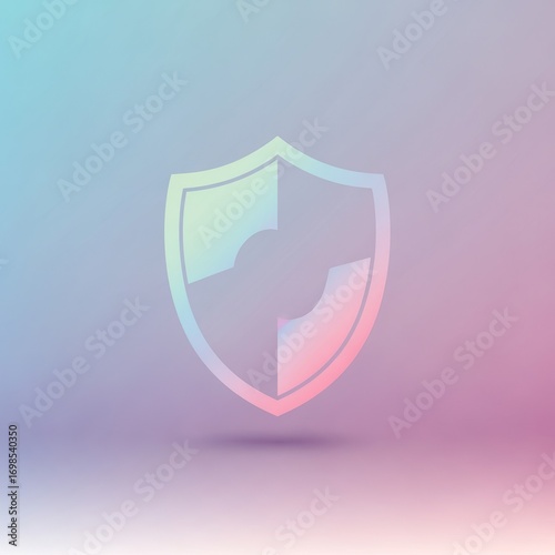 A pastel gradient background featuring a semi transparent shield icon with a subtle drop shadow effect