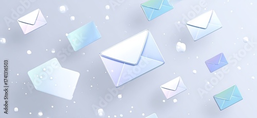 A pastel-toned background features floating envelopes and translucent bubbles, creating a dreamy, ethereal composition