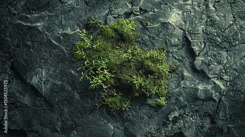 A patch of green moss growing on a dark, textured surface.