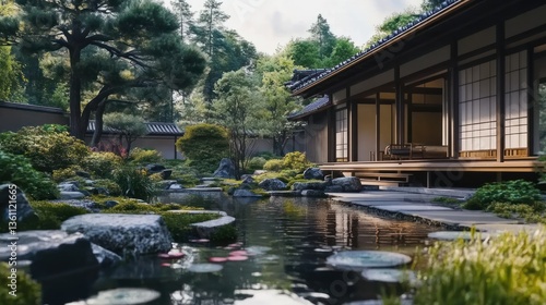 A peaceful Japanese countryside house with a Zen garden and koi pond --ar 16:9 --v 6.1 Job ID: fb75189e-e60c-408d-a470-bbc264125333