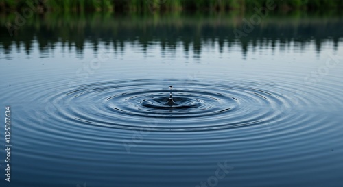 A perfectly symmetrical ripple effect forming on a still water surface