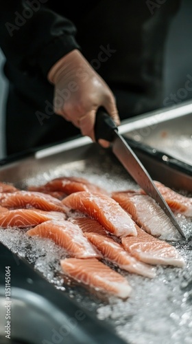 A person checking the temperature of refrigerated fish storage in a factory warehouse, ensuring freshness