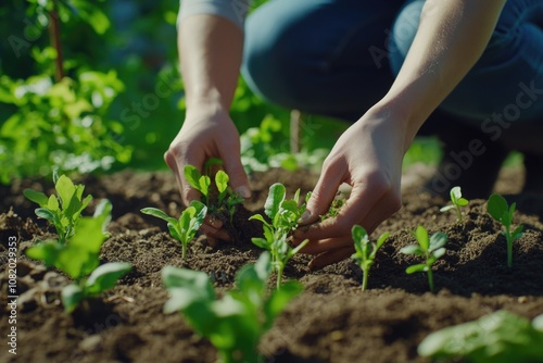 A person kneeling down among various types of plants, possibly for gardening or spiritual purposes