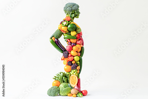 A person made out of vegetables and fruits