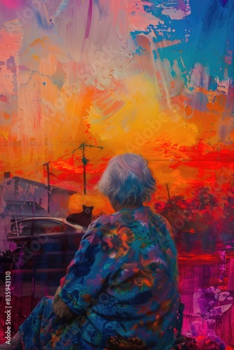A person sitting on a bench with a calm and peaceful expression