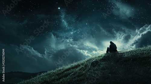 A person sitting peacefully on a hilltop, embracing nature and contemplating spiritual alignment and reflection