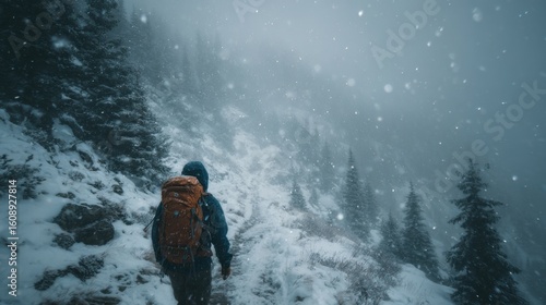 A Person Walking on a Snowy Trail Surrounded by Majestic Trees in a Peaceful Winter Wonderland Scene