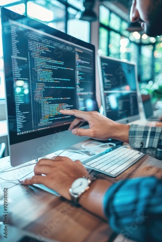 A person working on their laptop or desktop computer, possibly writing an email or document