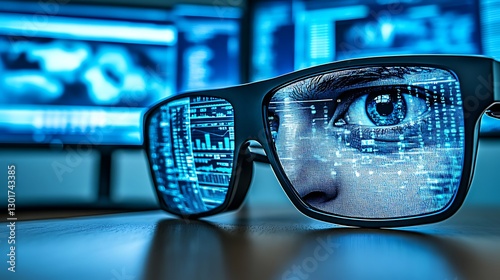 A Persons Eye Observing Data Reflected in Smart Glasses Lenses
